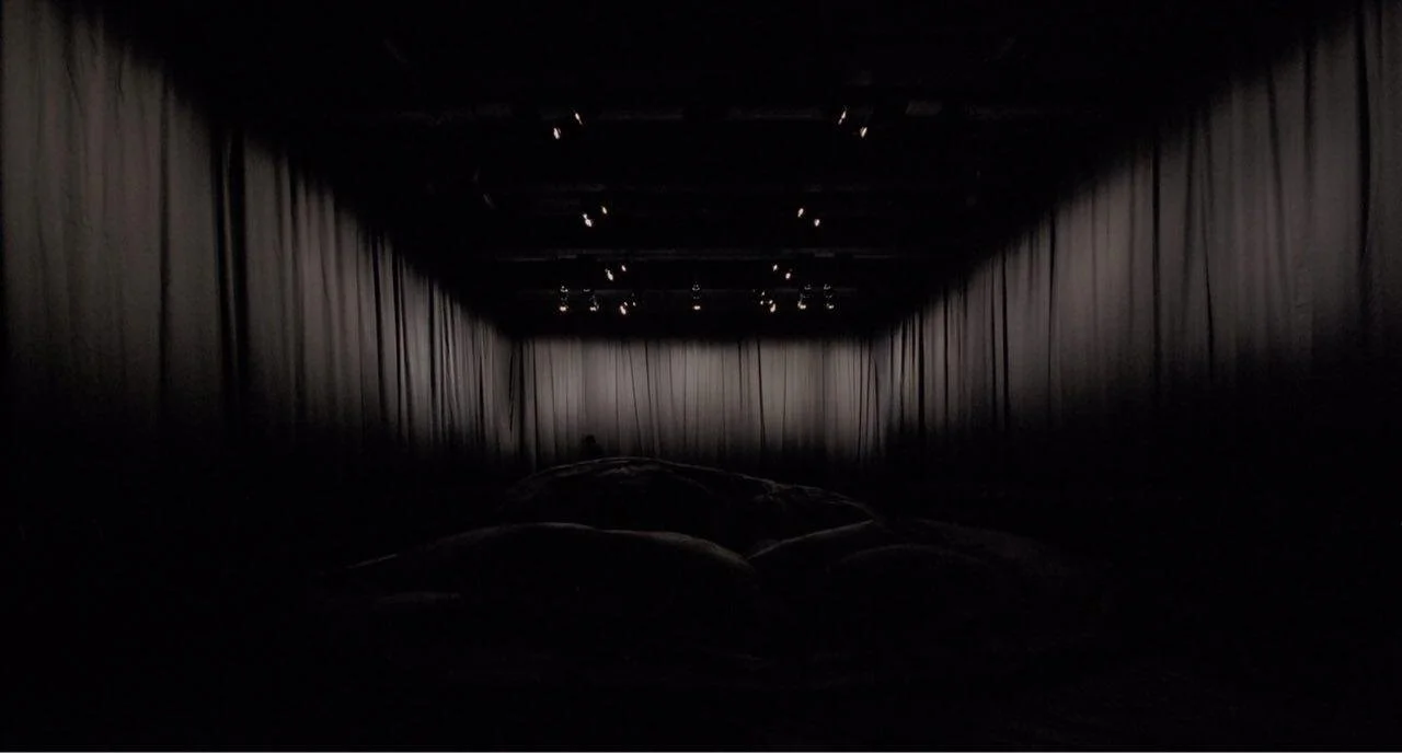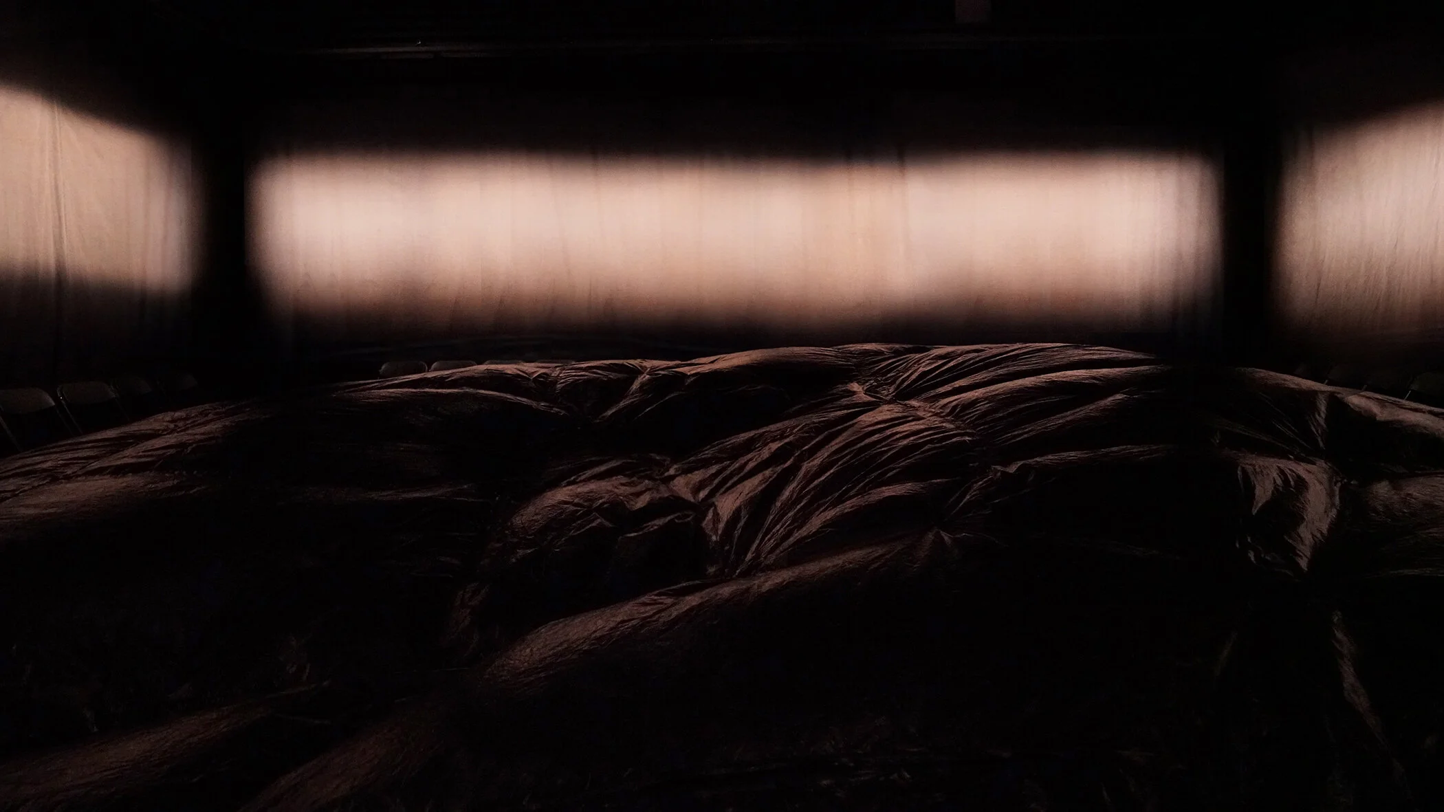 Flashdance is a show where darkness takes a material form. It is a show in which a plastic entity – the size of the whole stage area – transforms into a moving darkness. This entity turns into sculptural landscapes and forms impossible for the human body. It literally overshadows the spectator. The audience is faced with their limited ability to see and the boundless terrain of their imagination. Flashdance evokes that which is mysterious and unconscious. In Flashdance darkness does not need to be scary, it can also be your friend.